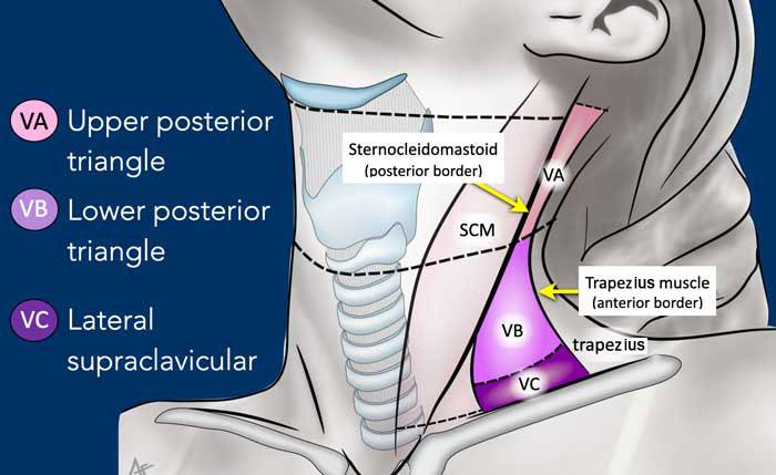 Tầng Vc nhận các bạch mạch hướng tâm từ các hạch tam giác cổ sau (tầng Va và Vb) và thường liên quan hơn đến các khối u vòm hầu [1].