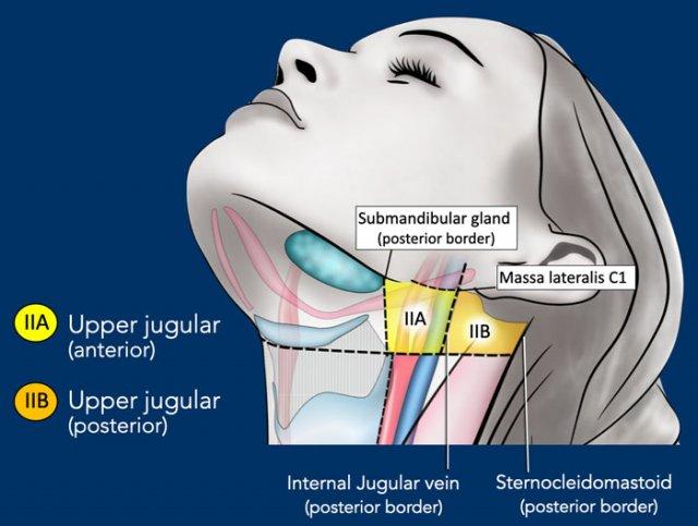 Các hạch bạch huyết ở tầng IIa và IIb có nguy cơ chứa di căn từ các ung thư hốc mũi và khoang miệng, vòm hầu, hầu miệng, hạ hầu, thanh quản và các tuyến nước bọt lớn.
