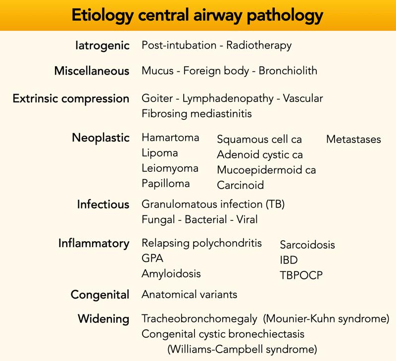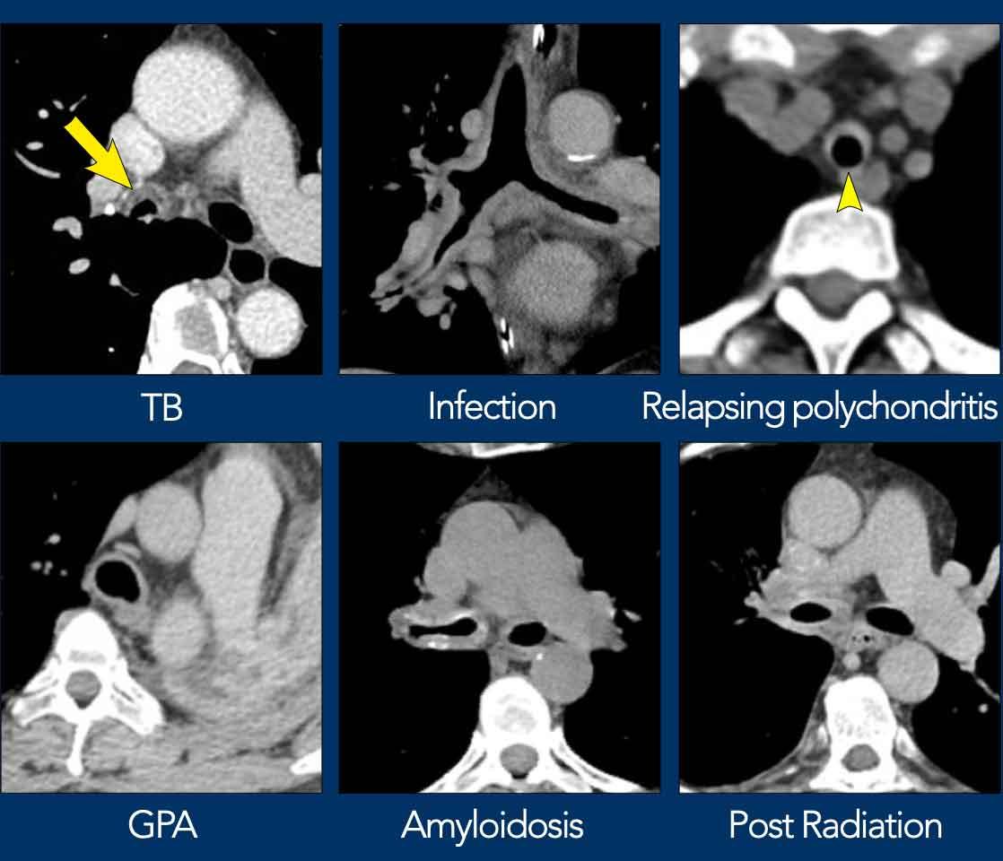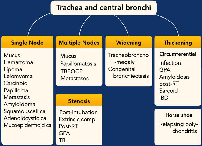 Bệnh lý của khí quản và phế quản trung tâm ít được gặp, do đó hầu hết các bác sĩ chẩn đoán hình ảnh đều thấy đây là một thách thức.