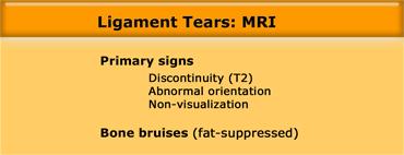 Nhiều dấu hiệu gián tiếp của đứt dây chằng đã được mô tả, nhưng chúng không thực sự hữu ích vì chúng ta cần dựa vào việc quan sát trực tiếp dây chằng.