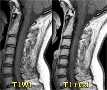 Ở một bệnh nhân khác có các tổn thương không đặc hiệu trong tủy sống.
