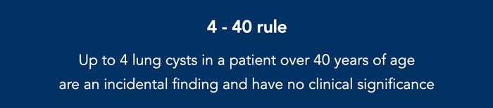 Không nên áp dụng quy tắc này quá cứng nhắc khi bệnh nhân có nghi ngờ lâm sàng về bệnh phổi dạng nang (ví dụ: chụp tầm soát cho BHD hoặc tràn khí màng phổi tái phát).