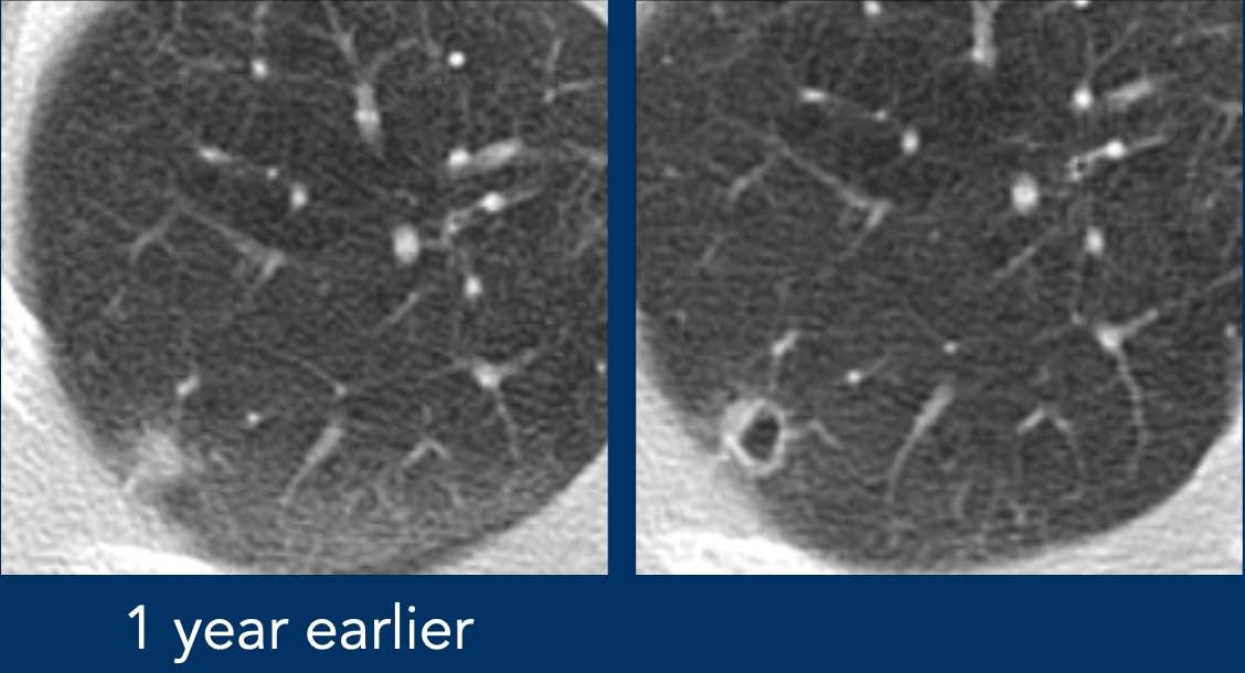 Hình ảnh chụp một năm trước đó phát hiện một nốt nhỏ tại cùng vị trí.