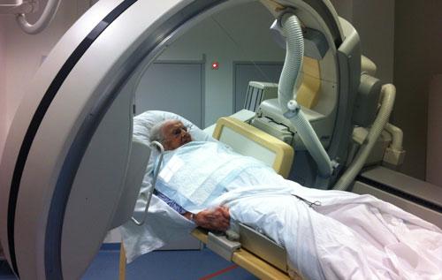 Nếu bệnh nhân không thể đứng hoặc ngồi, vẫn có thể thực hiện tư thế nghiêng.
