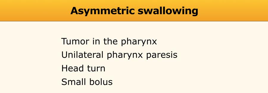 Trong ví dụ này, chúng ta có thể thấy bệnh nhân cố gắng bù đắp cho sự mất chức năng co bóp hầu bằng cách cử động quá mức của lưỡi và đầu.