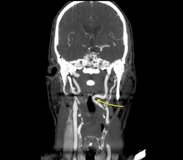Đây là một bệnh nhân khác với động mạch cảnh trong bị dài ra.