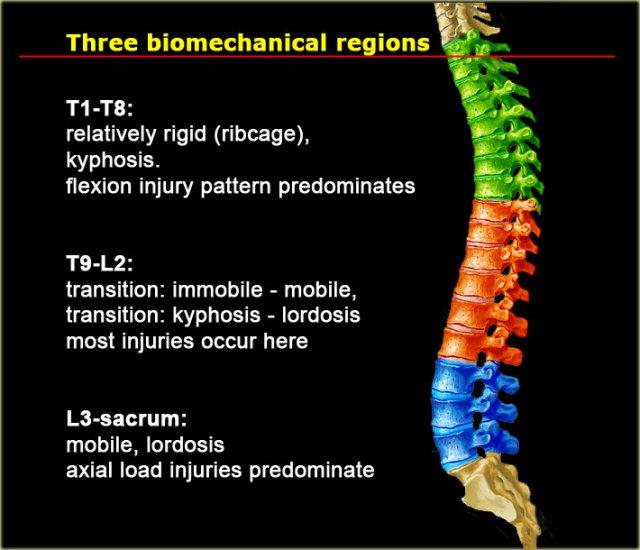 Trong cột sống ngực-thắt lưng có ba vùng sinh cơ học.