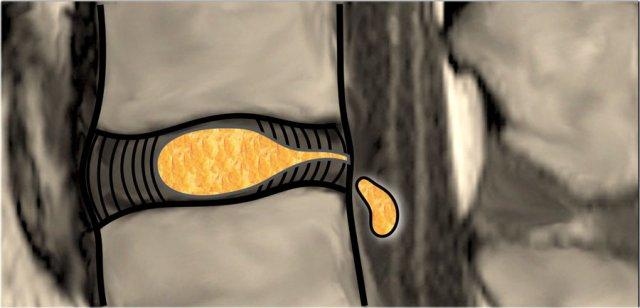 Đây là hệ quả của các vết rách trong vòng sợi (annulus fibrosus).