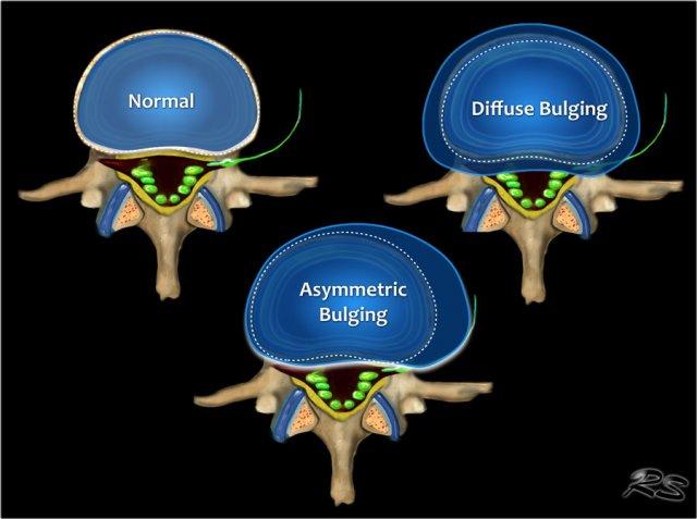 Hiện tượng phồng đĩa đệm không đối xứng với phạm vi lớn hơn 25% chu vi đĩa đệm thường được xem là sự thích nghi với biến dạng cấu trúc lân cận.