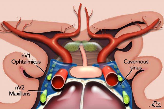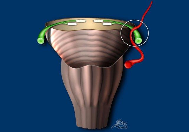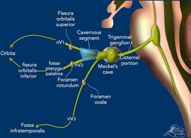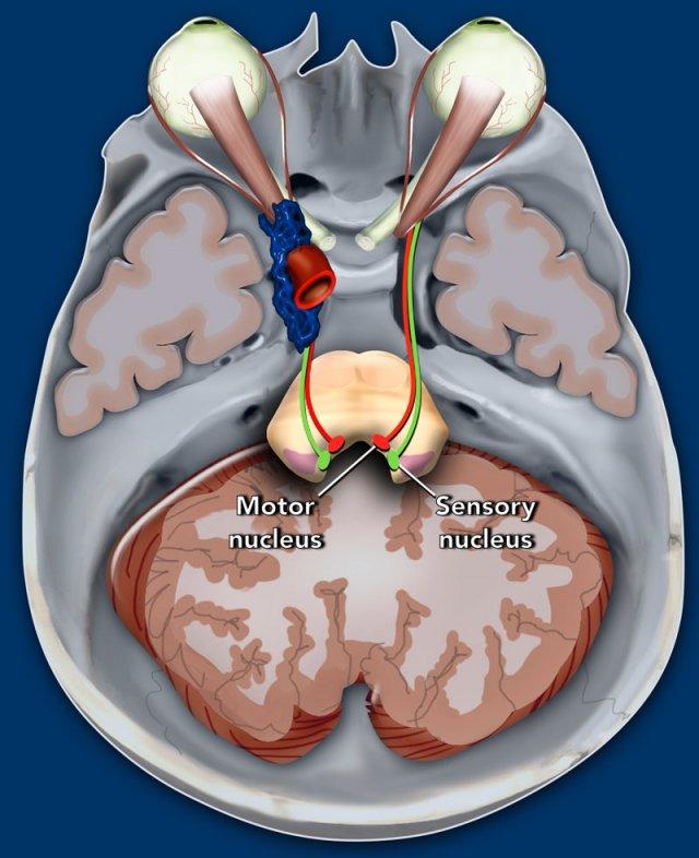 Đoạn bể dịch não tủy – hầu như không có ngoại lệ – là nguồn gốc của chứng đau dây thần kinh sinh ba thực sự do chèn ép mạch máu-thần kinh.