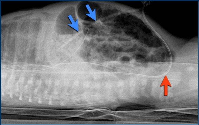 Catheter dạ dày cần được đặt với đầu ống nằm trong dạ dày.