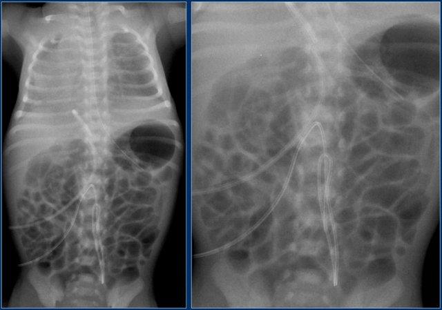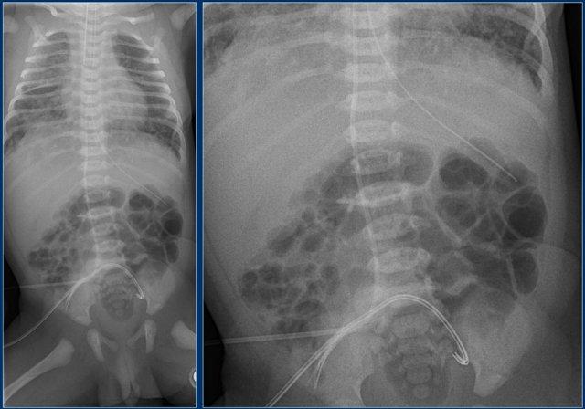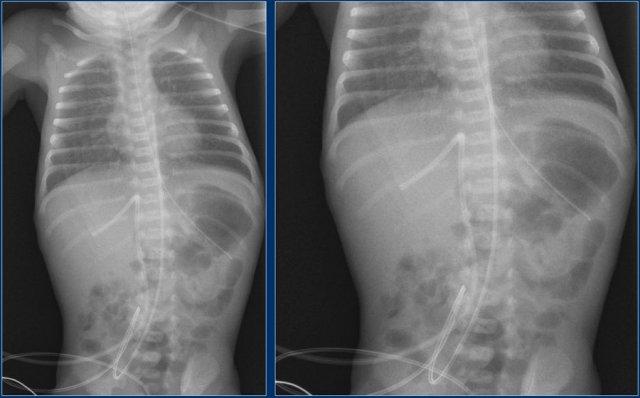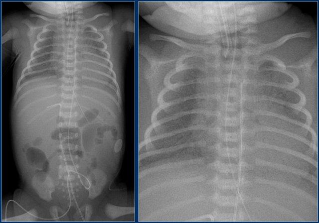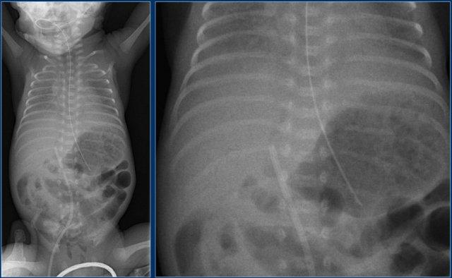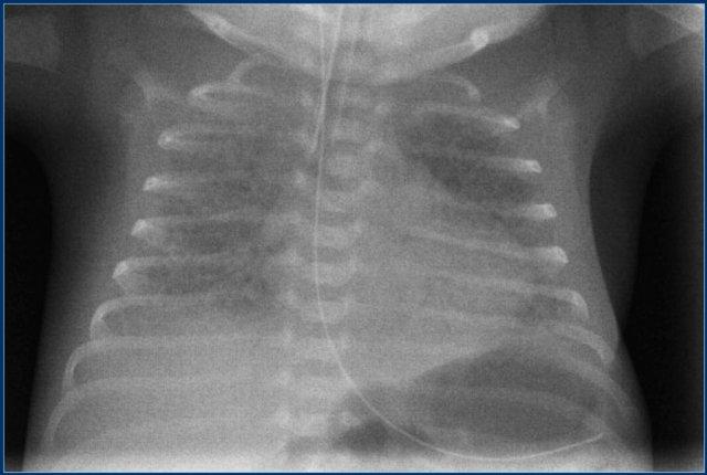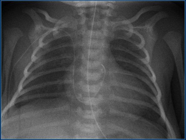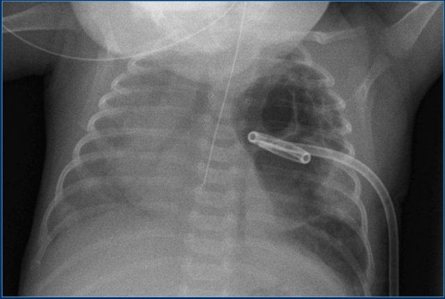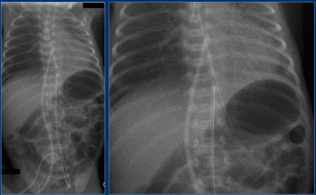 Đây là hình ảnh một trẻ sinh non bị teo thực quản có kèm theo lỗ rò.