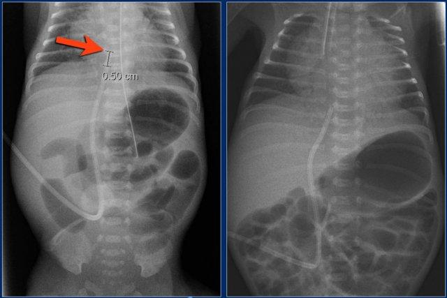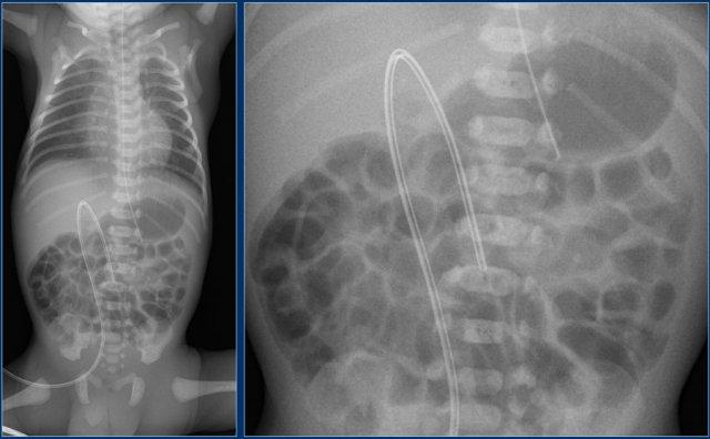 Điều quan trọng là bác sĩ sơ sinh cần biết liệu đầu catheter có đang ở vị trí nông hay không, vì trong trường hợp đó không thể truyền tất cả các loại thuốc.