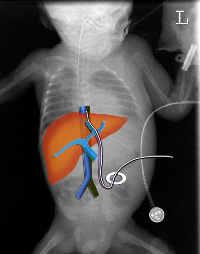 - Đường truyền tĩnh mạch rốn với đầu catheter nằm trong nhánh tĩnh mạch cửa phải.