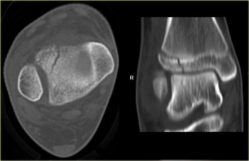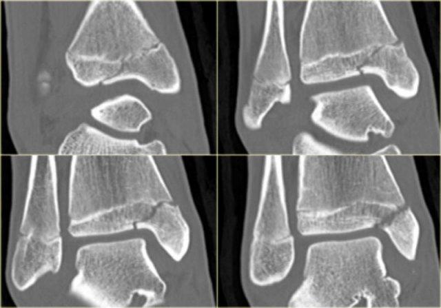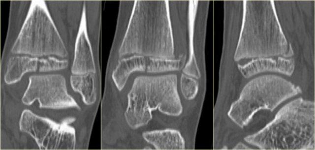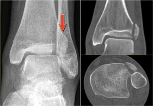 Trong một số trường hợp, gãy mắt cá sau hầu như không nhìn thấy hoặc không thể phát hiện trên phim X-quang và chỉ có thể thấy được trên CT.