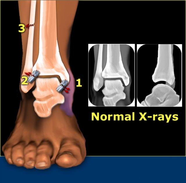 Ở tất cả các giai đoạn tiếp theo này, tổn thương dây chằng đơn thuần sẽ không hiển thị trên phim X-quang cổ chân.