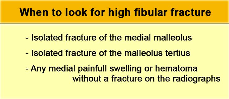 Những gãy xương này dễ bị bỏ sót vì bệnh nhân hiếm khi than đau ở vùng xương mác đoạn gần, do cổ chân mới là nơi đau nhiều nhất.