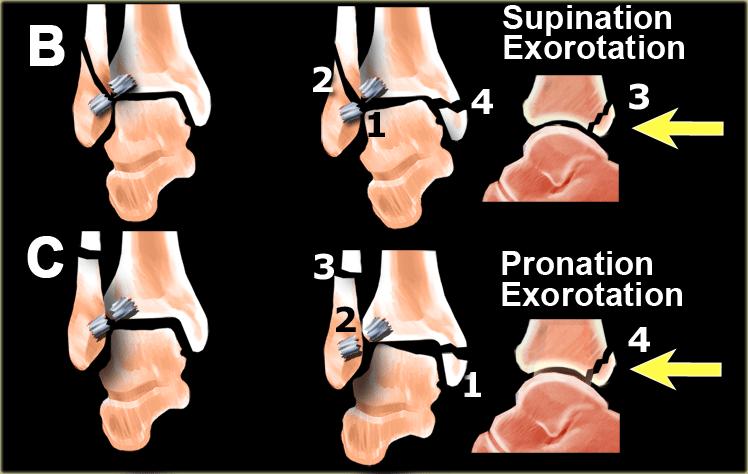 Hầu hết các trường hợp gãy mắt cá sau đều là một phần của chấn thương xoay, dẫn đến gãy kiểu Weber B hoặc Weber C.