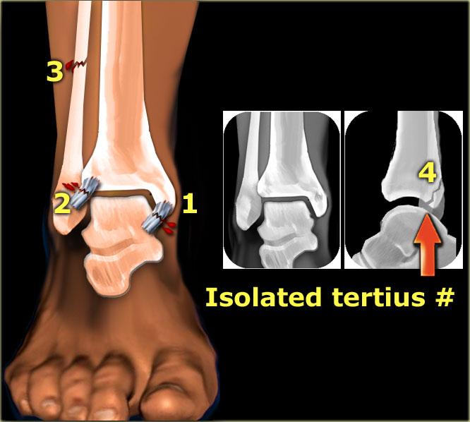 Việc tìm ra các tổn thương gãy này rất quan trọng, vì gãy tertius có thể là dấu hiệu duy nhất của một chấn thương cổ chân không vững.