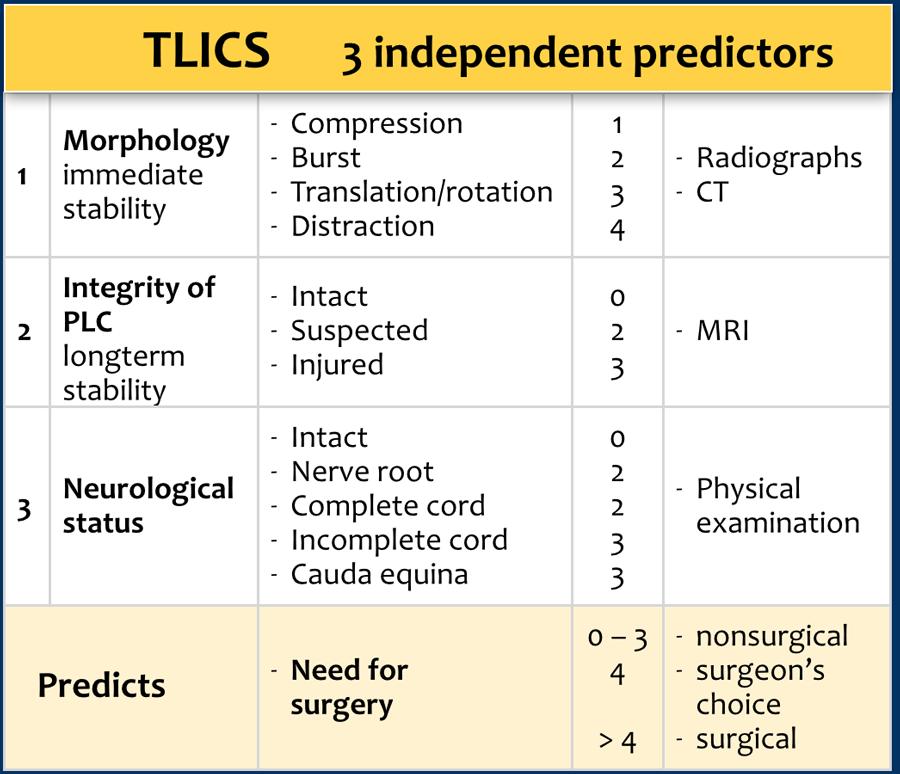 Tầng có điểm TLICS cao nhất thường sẽ quyết định phương pháp điều trị được lựa chọn.