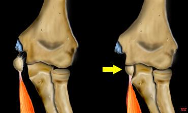 Khi khớp khuỷu bị trật và mỏm trên lồng cầu trong bị bong ra,