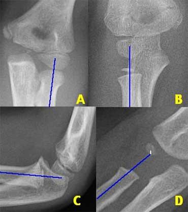 Bên trái là một vài ví dụ về gãy lồi cầu ngoài.