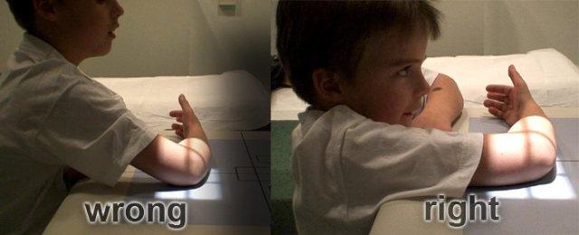 Hai ví dụ bên trái minh họa tư thế ‘cổ tay đặt thấp’ dẫn đến xoay xương cánh tay.