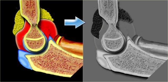 Khi ròng rọc chưa được cốt hóa, mảnh avulsion có thể giả dạng trung tâm cốt hóa của ròng rọc.