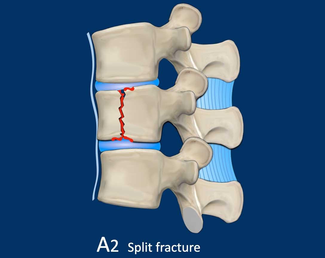 A2 is a fracture of both endplates without involvement of the posterior wall of the vertebral body.