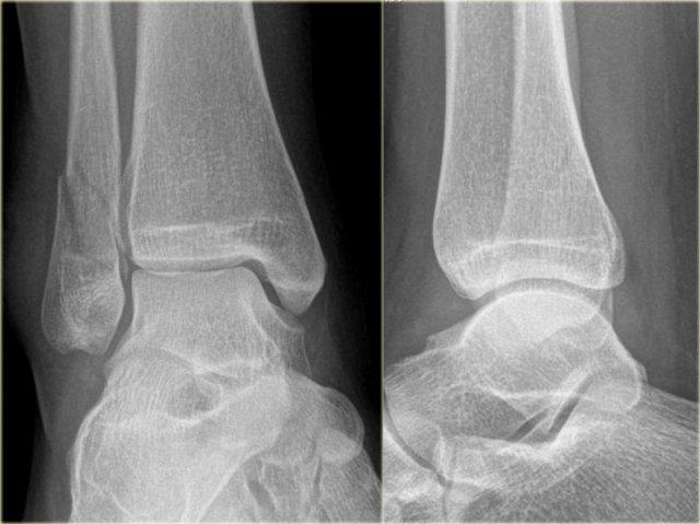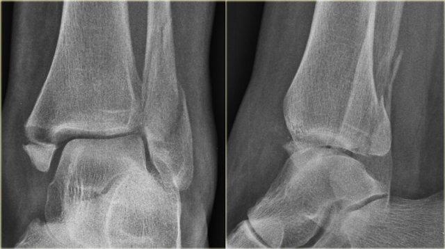 Các phim chụp X-quang cho thấy gãy mắt cá sau.