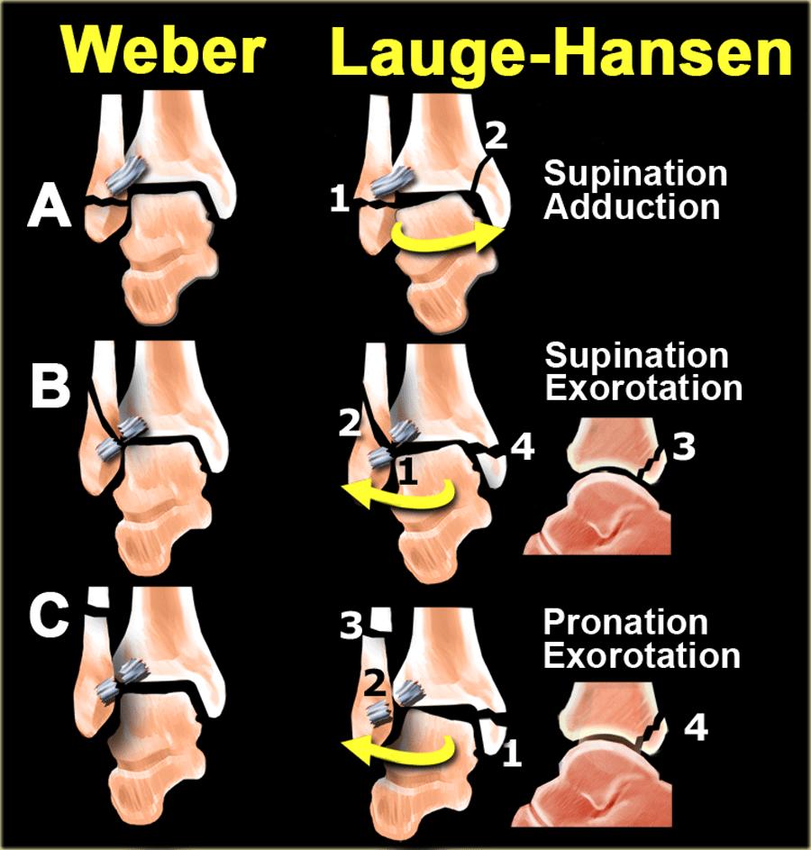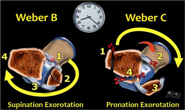 Weber B và C khó hơn và điều cần thiết là phải hiểu trình tự các sự kiện trong các chấn thương này, vốn đều là chấn thương xoay ngoài.