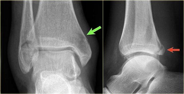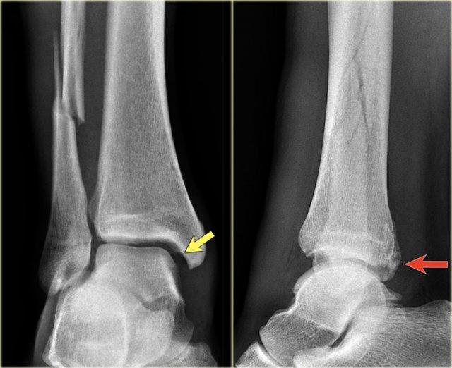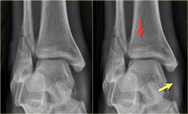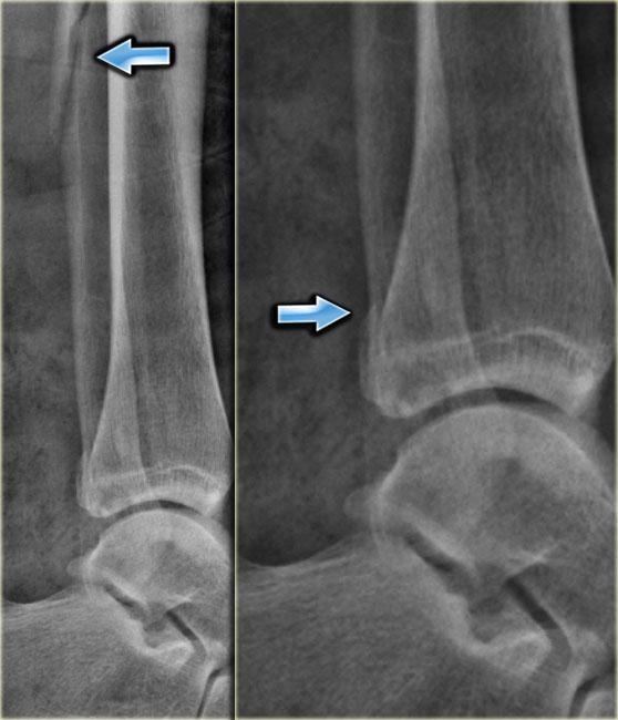 Trong nhiều trường hợp có thể thấy trên phim X-quang cổ chân, nhưng trong một số trường hợp vị trí gãy xương nằm cao và chỉ có thể thấy trên phim X-quang cẳng chân.