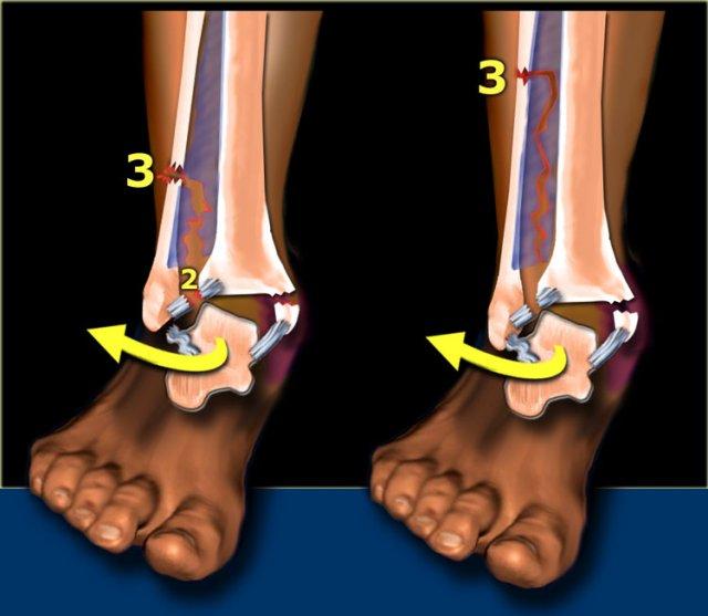 Lực liên tục sẽ xoắn xương mác và di lệch nó về phía xa, trong khi ở phía gần nó được cố định vào xương chày.