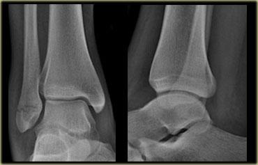 Lưu ý rằng trên phim X-quang cổ chân không thấy đường gãy xương.