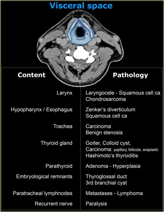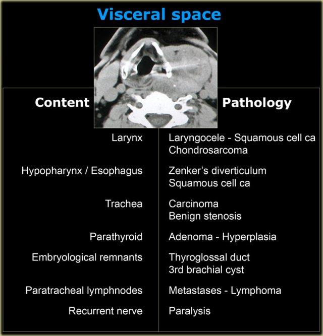 Ngăn trung tâm chứa nhiều tạng như thanh quản, tuyến giáp, hạ họng và thực quản cổ. - Khoang cảnh