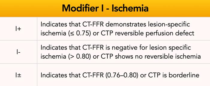 In CAD RADS 2.0 there are 6 modifiers that can be added to the Cad-Rads category: