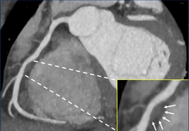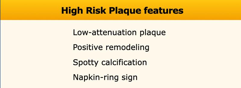 High-risk plaque features include: low-attenuation plaque, positive remodeling,