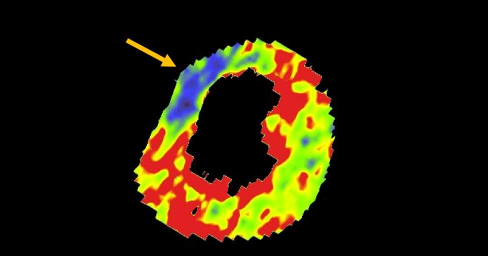 This low-attenuation area is surrounded by a higher attenuation