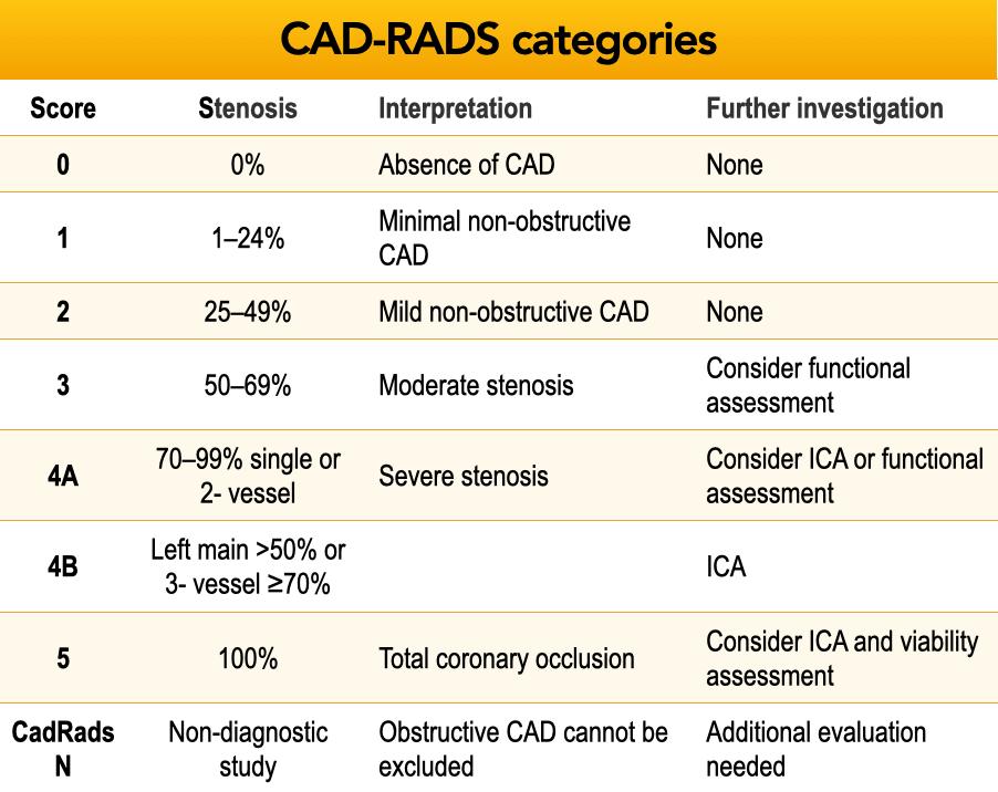 Note that CAD-RADS 0 denotes absence of stenosis or plaque,