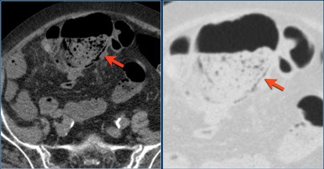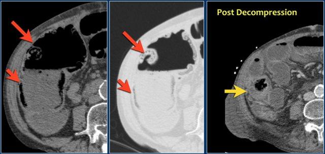 Đây là một bệnh nhân khác có khí thành ruột do tắc nghẽn.