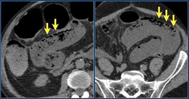 Khí trong thành ruột cho thấy nguy cơ thủng ruột sắp xảy ra.