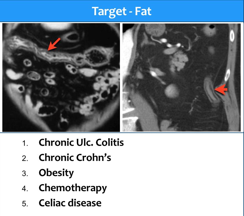- Mỡ trong lòng đại tràng, đôi khi gặp trong bệnh celiac.