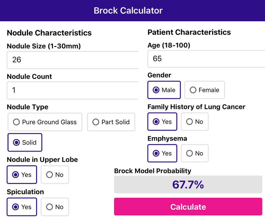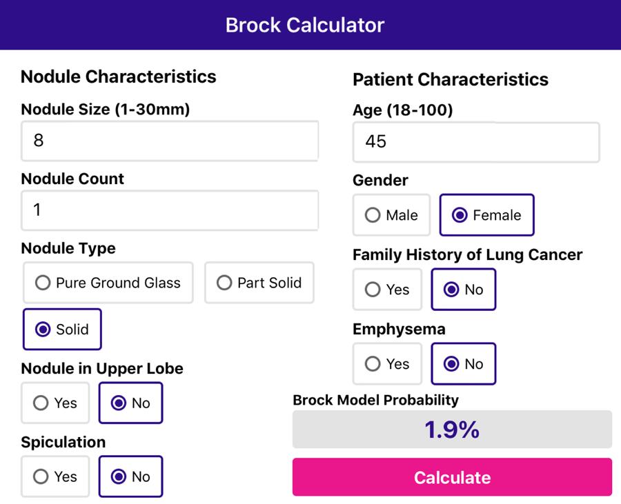 Sử dụng ứng dụng để nhập các đặc điểm của nốt và bệnh nhân, ứng dụng sẽ tính toán nguy cơ ác tính.