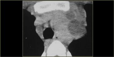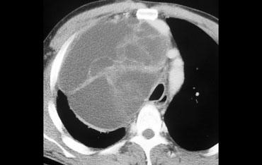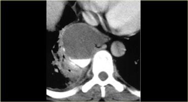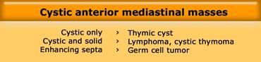 Khối có dạng nang nhưng có các thành phần đặc ngấm thuốc cản quang, do đó cần lo ngại đến u lympho, u tế bào mầm và u tuyến ức dạng nang.