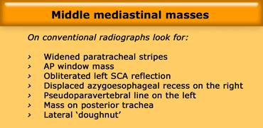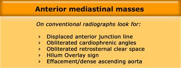 Do đó, nếu bờ trên của một tổn thương bị che khuất ở ngang mức hoặc dưới mức xương đòn, tổn thương đó nằm ở trung thất trước.