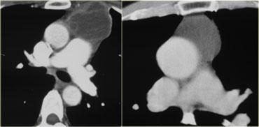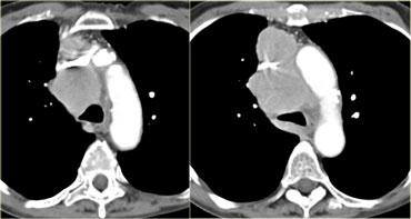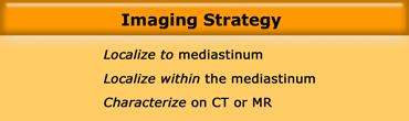 Tại nhiều cơ sở y tế, chụp CT được thực hiện để phân tích và đặc trưng hóa thêm các khối trung thất trước và giữa.
