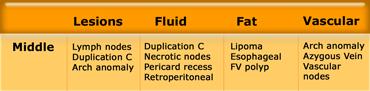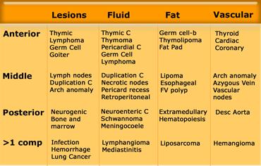 Dưới đây là danh sách các khối trung thất có thể chứa dịch:
