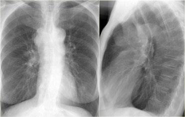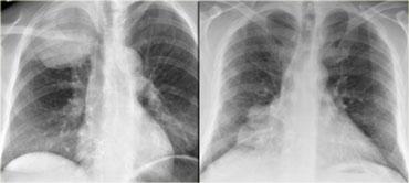 Vì vậy, bệnh nhân bên trái bị tăng áp lực động mạch phổi với các mạch máu giãn vừa phải, trong khi bệnh nhân bên phải bị sarcoidosis với hạch to lan tỏa.