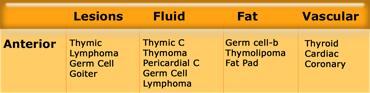 Bảng bên trái là bảng tổng quan về các khối trung thất.