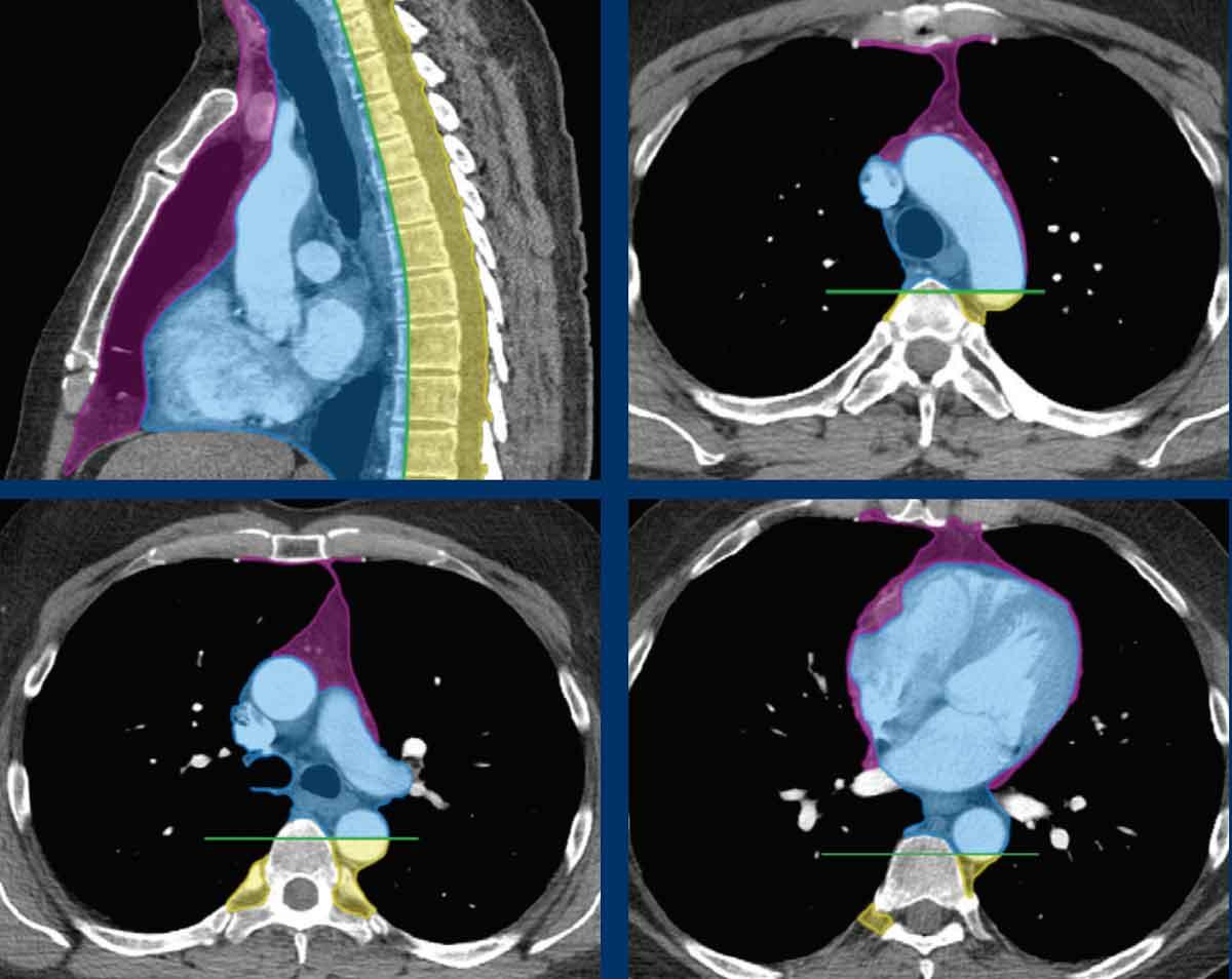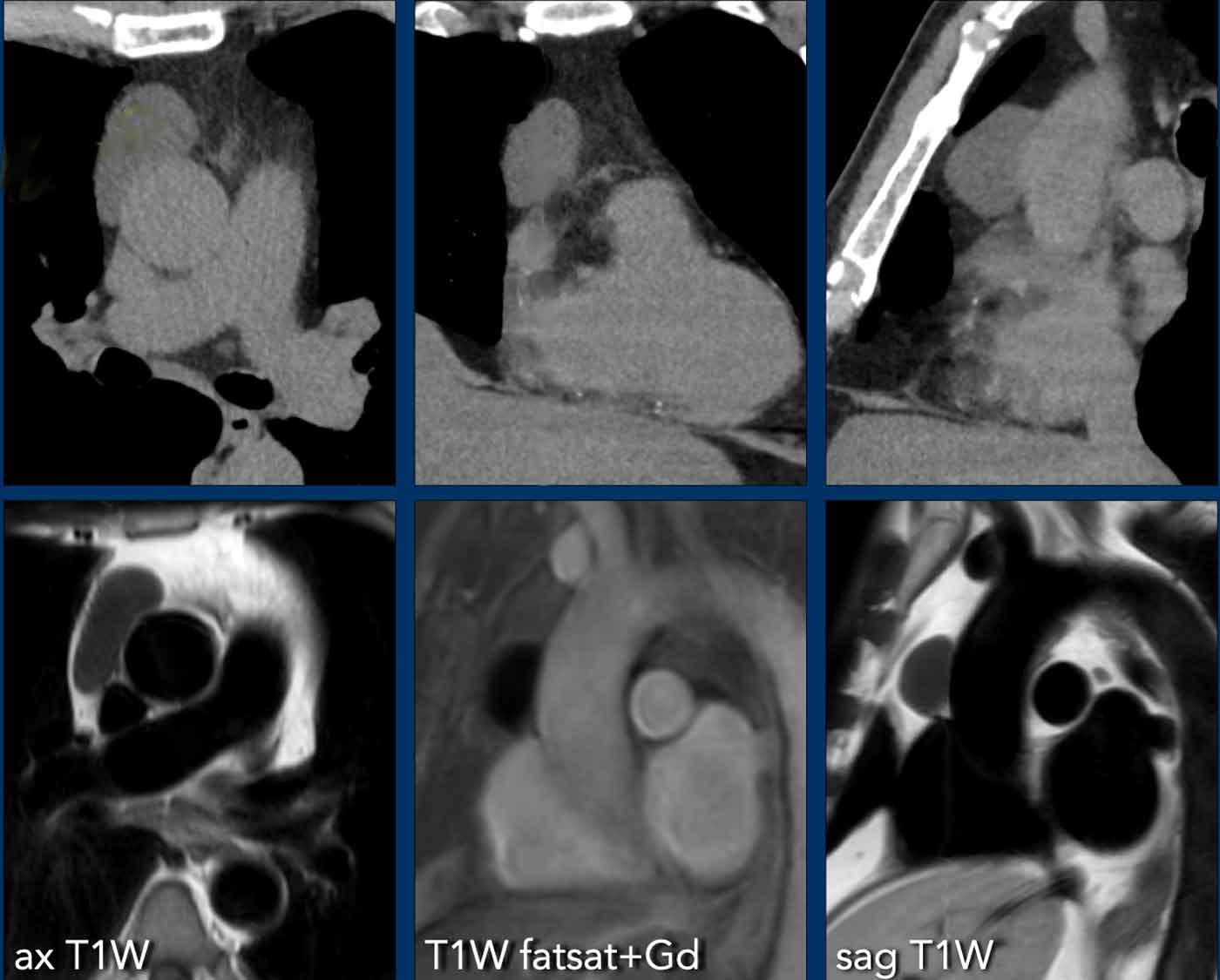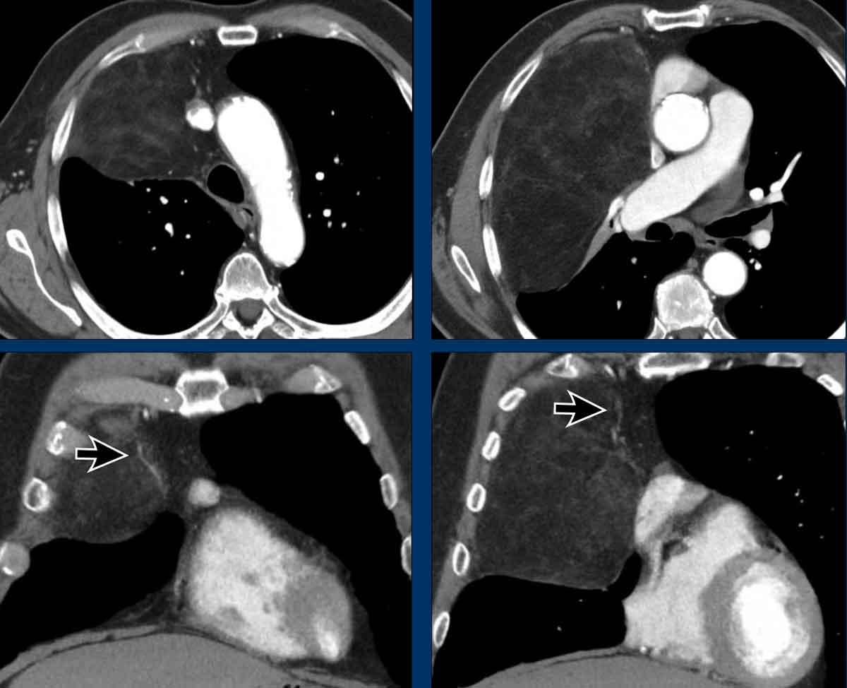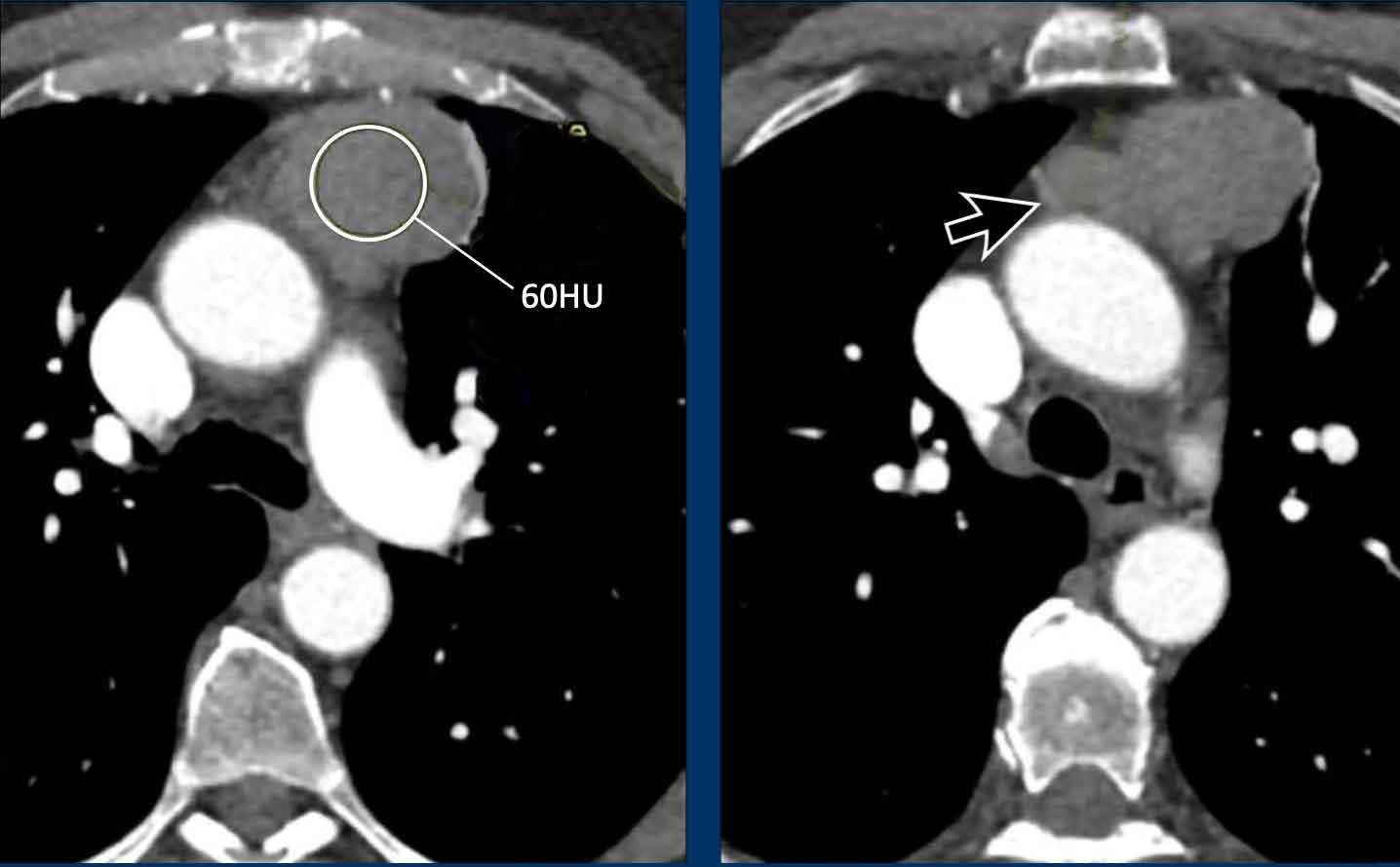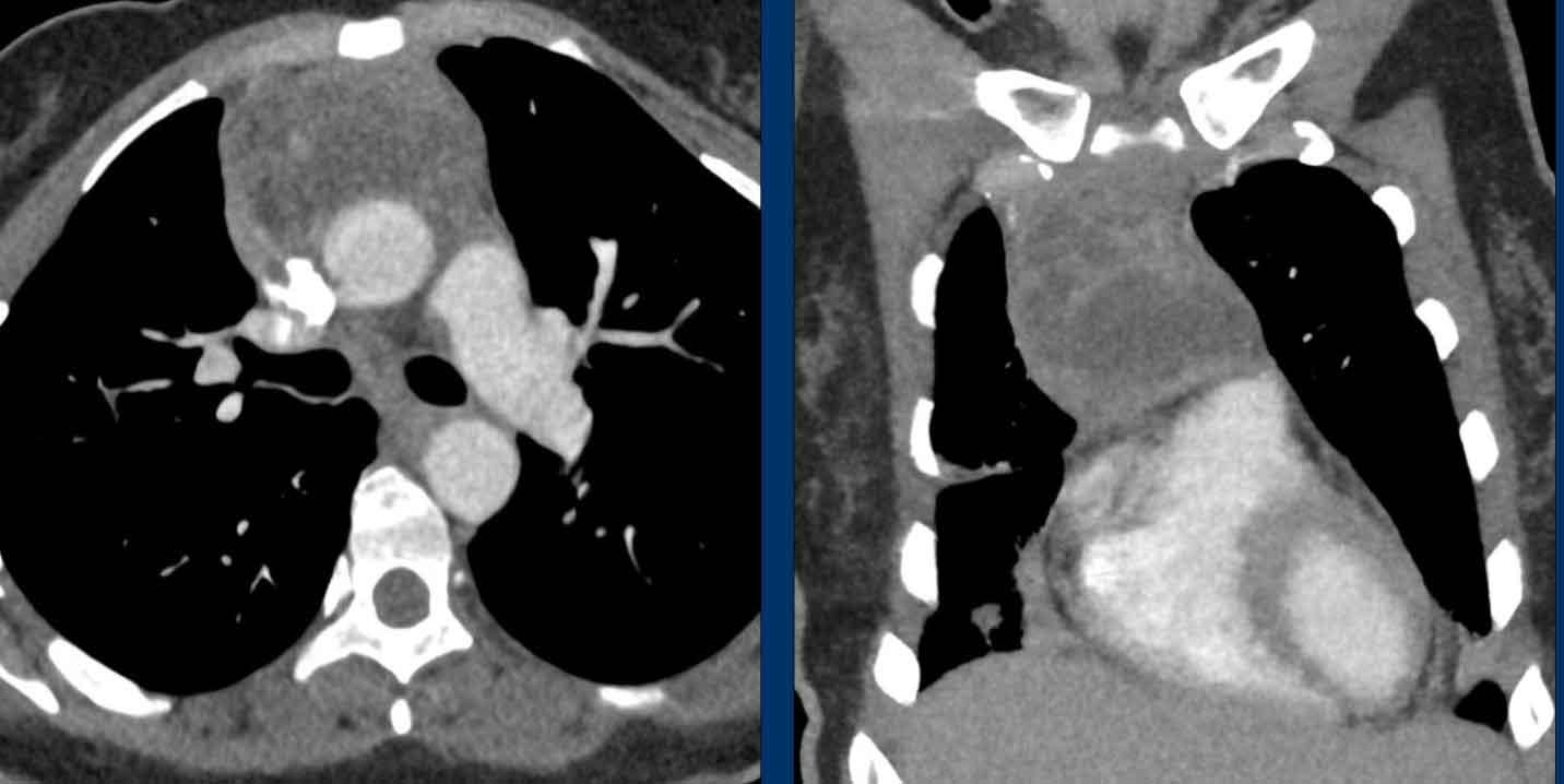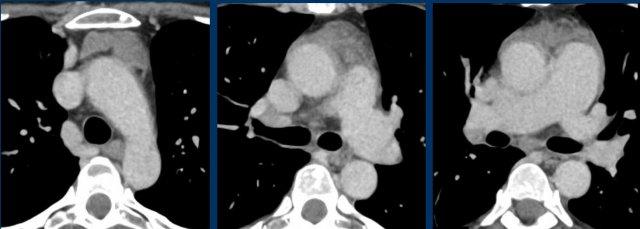 Các hình ảnh này của bệnh nhân nam 36 tuổi nhập viện với khối trung thất lớn.